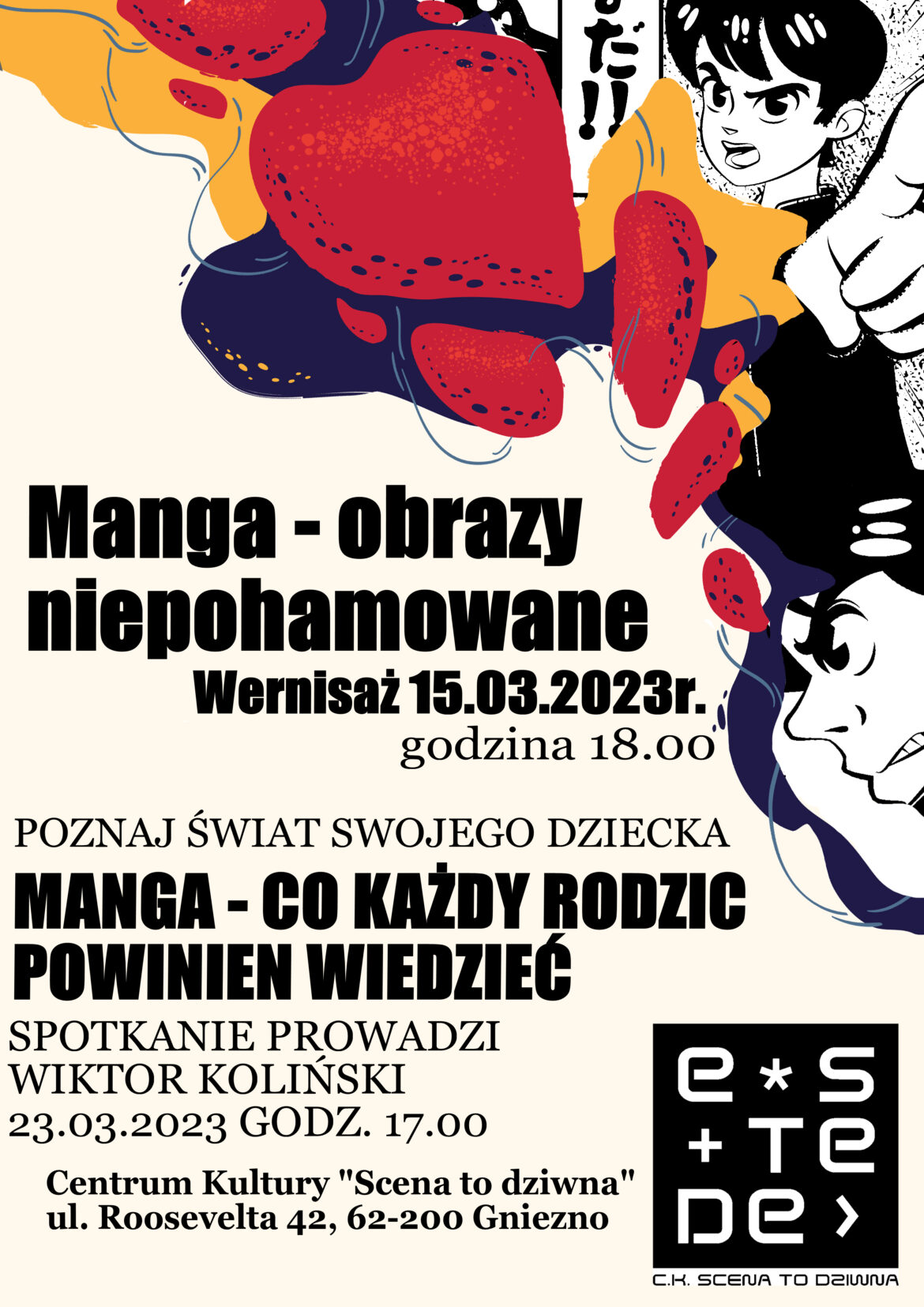 Ta popularna wśród młodych ludzi szczególna forma ekspresji artystycznej wciąż jednak pozostaje pewną niewiadomą dla rodziców. By pomóc im interpretować i zrozumieć świat mangi i jego fenomen, eSTeDe zaprasza na spotkanie „Manga – co każdy rodzic powinien wiedzieć”, które poprowadzi Wiktor Koliński. Spotkanie odbędzie się w czwartek, 23 marca 2023 roku o godzinie 17.00.