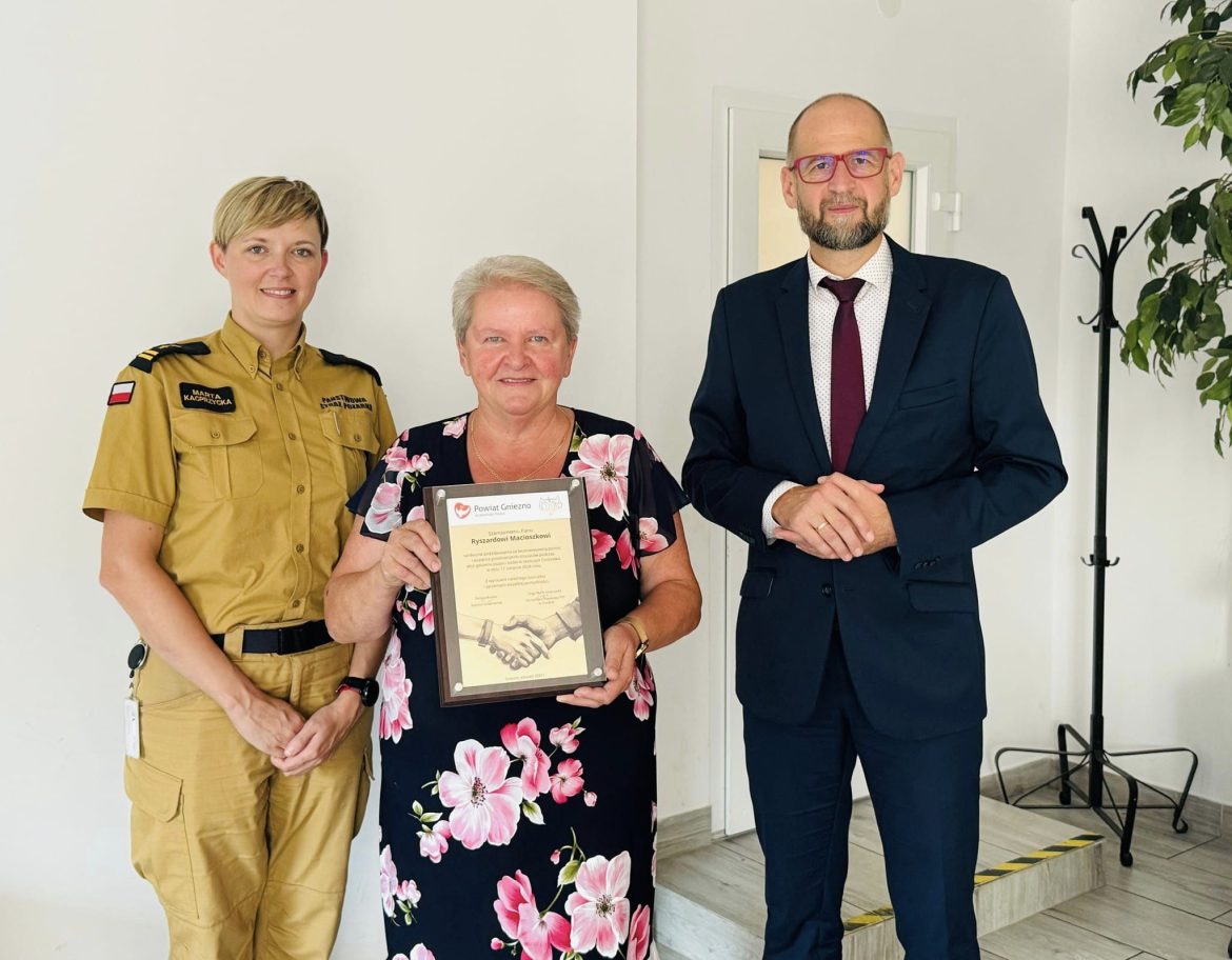 3 września Starosta Gnieźnieński Tomasz Budasz oraz bryg. Marta Kacprzycka, Komendant Powiatowy PSP, uhonorowali Państwa Macioszek, właścicieli baru Smakołyk, za przygotowanie posiłków dla strażaków w dniu pożaru. To przykład lokalnej solidarności w trudnych chwilach.