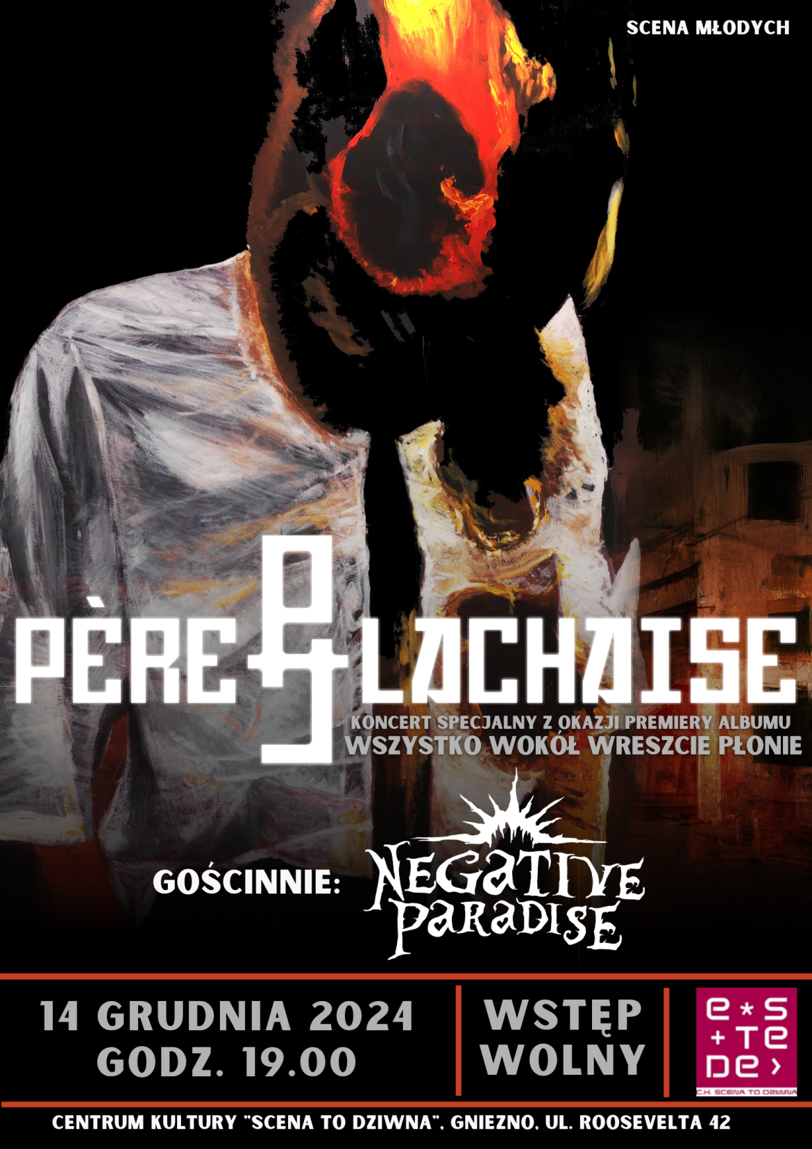 Centrum Kultury „Scena to dziwna” zaprasza na ostatnią w tym roku Scenę Młodych. 14 grudnia o godz. 19:00 na scenie wystąpi Père-Lachaise, tym razem w towarzystwie Negative Paradise. Wstęp wolny – zapraszamy na niezapomniany muzyczny wieczór!
